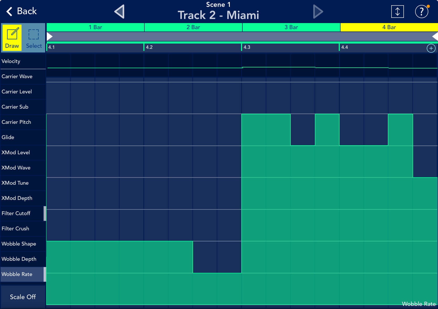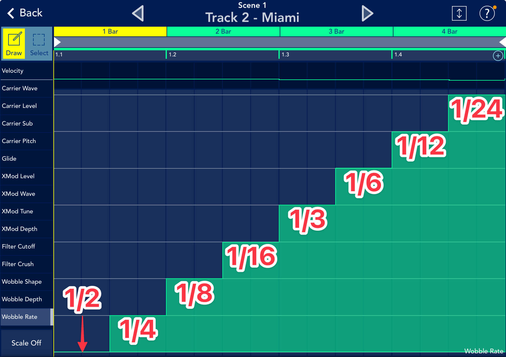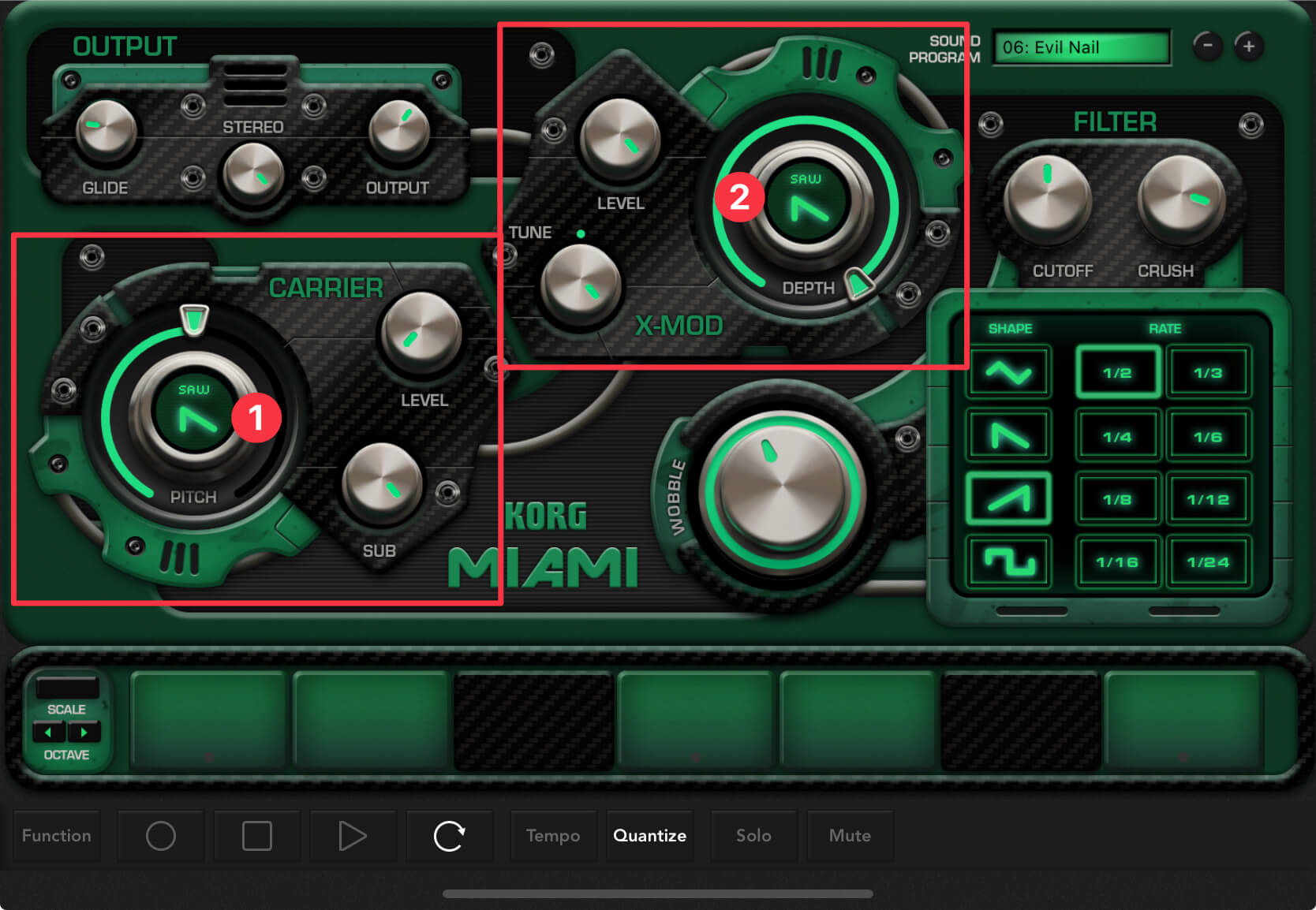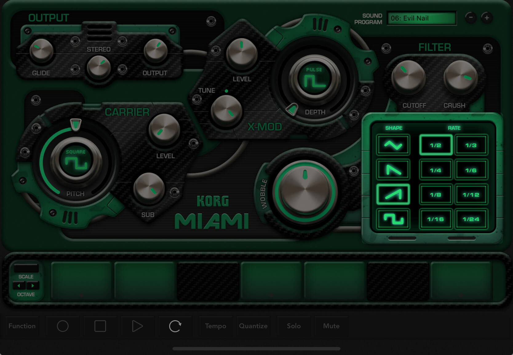 KORG Gadgetのモノシンセ「Miami」で簡単ダブステップ。ウォブルベースってなんとなく難しそうですけど、要は「BPMに同期させたLFOをフィルターにかける」ということ。シンプルなベースラインを作り、そいつにLFOの揺れ具合をオートメーションするだけ。お手軽でしょ?#コルガジェ pic.twitter.com/EiYK7uISsF
