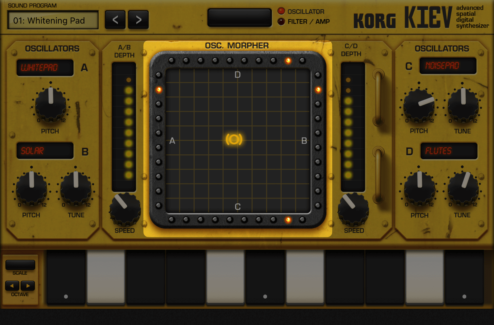 Kievは「ベクターシンセシス」という、複数サンプルを並べて一つのサウンドに仕上げる、シンセサイザーとしては独特の考え方で設計されています。