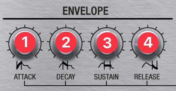 - Env Attack アタックタイム。鍵盤を押してから音が立ち上がるまでの時間