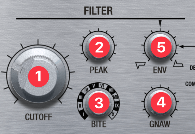 加えて、フィルターのドライブ量を設定できる"BITE"、更なる攻撃的サウンドへと変貌させる"GNAW"といったユニークなパラメーターも存在します。