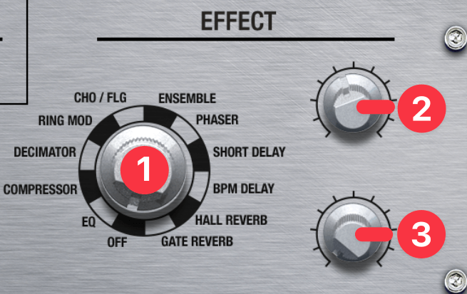 | Cho/Flg | コーラス及びジェット的うねり | スピード(コーラス→フランジャー効果) | 効果の深さ |