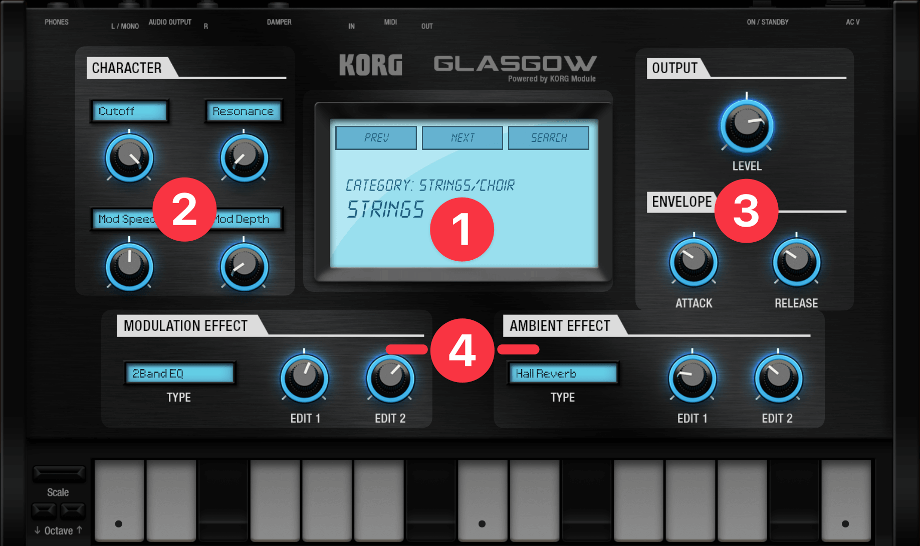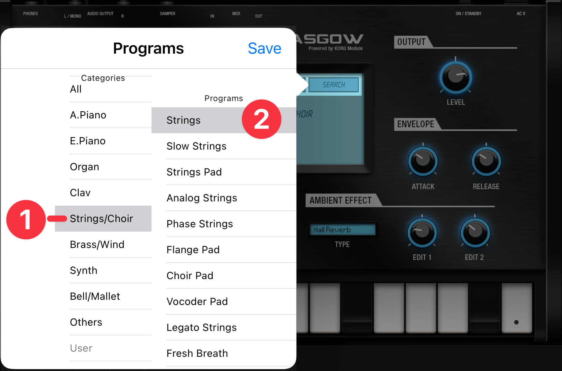 特徴は、KORG ModuleアプリのStoreにて好きなサウンドパックを追加できること。Glasgowで使用可能なプログラムは570以上にも及びます。