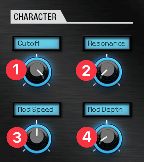 - Edit 1 カットオフ周波数。上げると明るく、下げると暗いサウンドになる