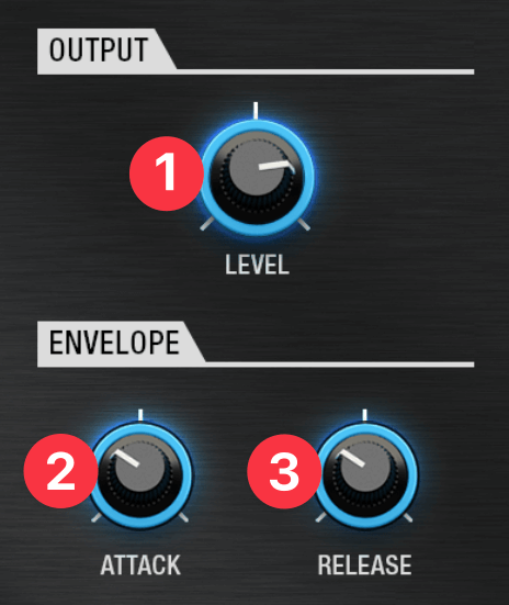 - Output / Envelope 音の立ち上がりや余韻(よいん)、出力レベルを定める