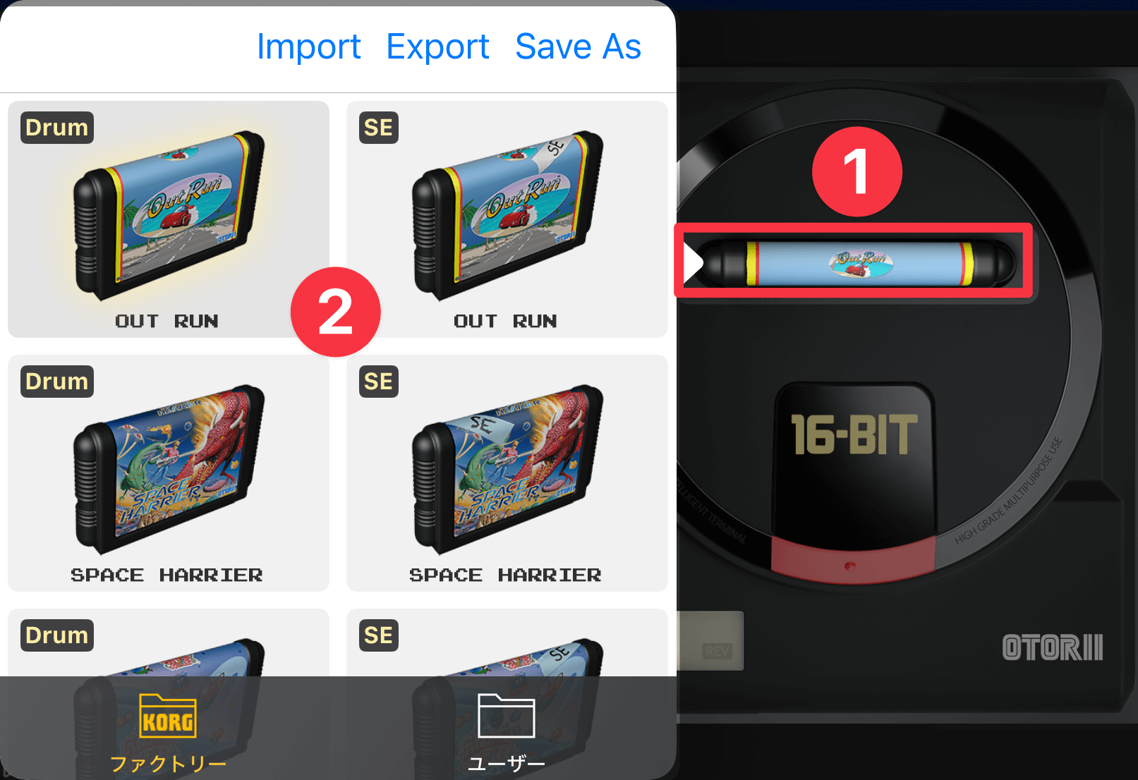 - セガの名作アーケードゲームのドラムサンプルをプリセット。ボイスや効果音も充実。