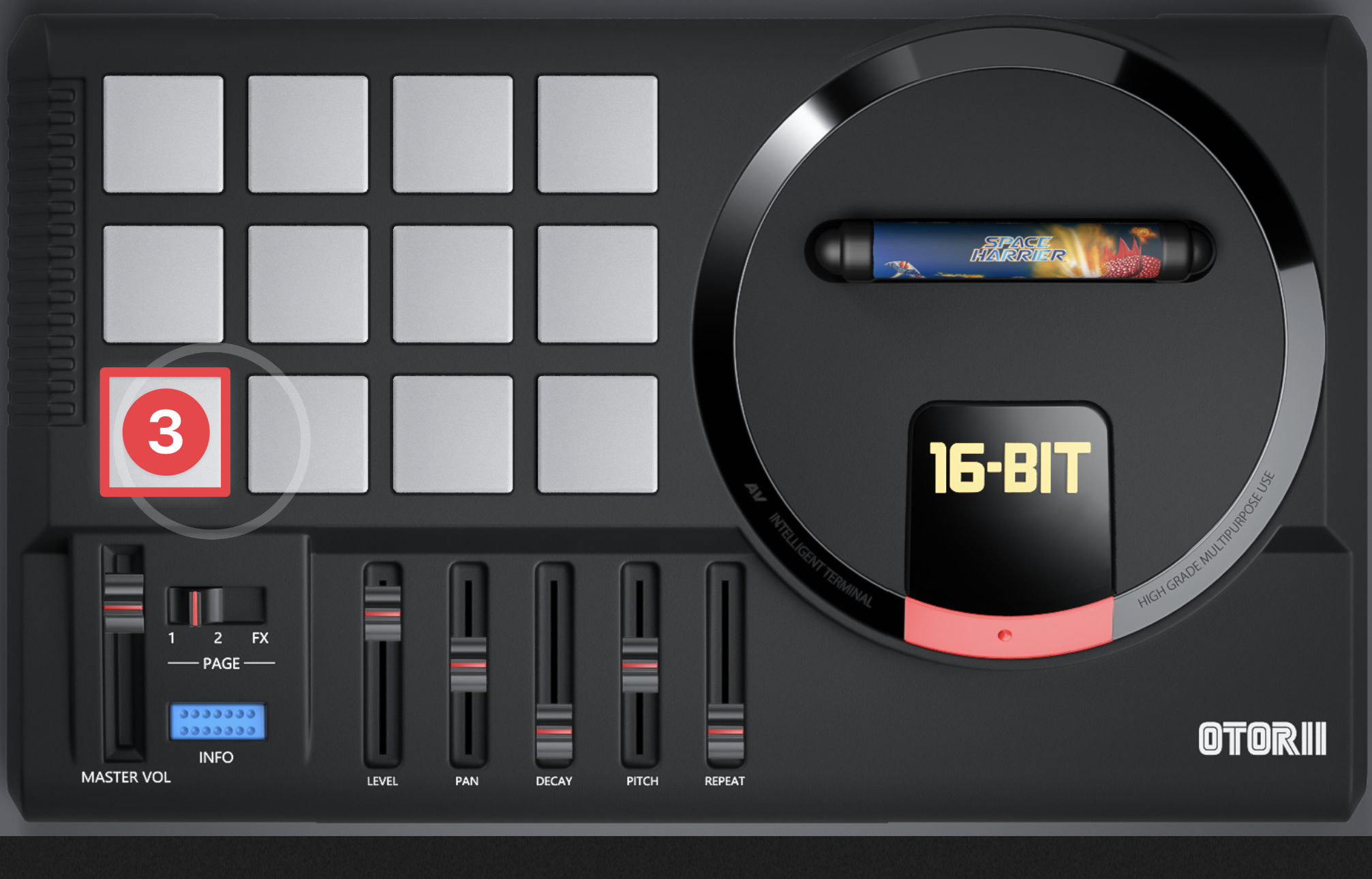 好きなカートリッジをタップすると、その作品で用いられた代表的なサンプルが、12個あるパッドに割り当てられます。