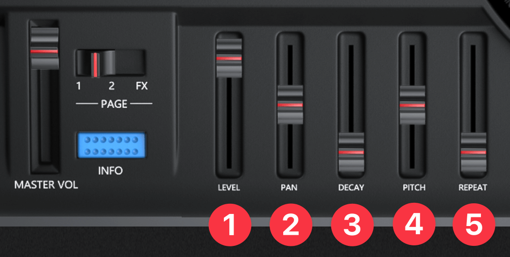 PAGE 1では、5本あるスライダーでサウンドを整えます。