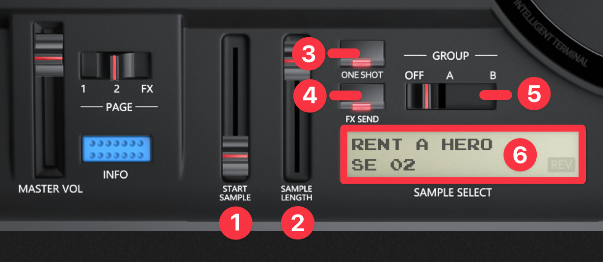 - START SAMPLE サンプルの再生が始まる位置。スライダーを上げるとサンプルの途中から再生される