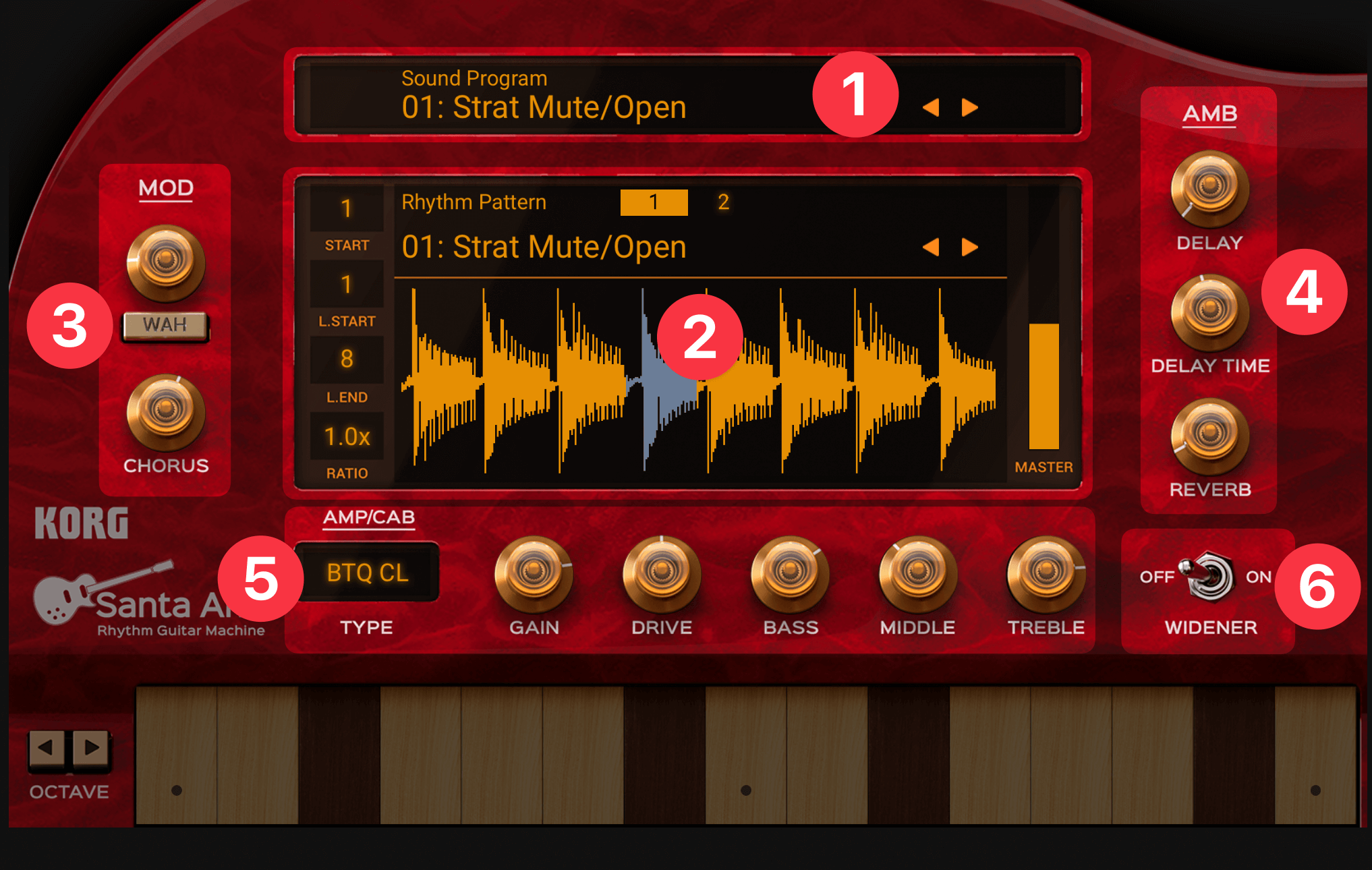 Santa Ana(サンタアナ)は、KORG Gadget唯一のリズムギターマシンです。