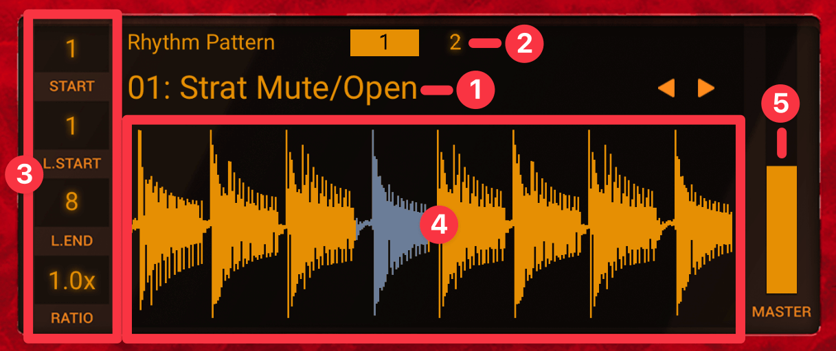 RATIO 再生する速度。0.5xで2倍速、2.0xで2分の1、4.0xで4分の1の速さになる - 波形表示部