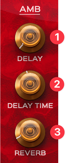 アンビエント系(ディレイとリバーブ)の内蔵FXです。ディレイはやまびこのように繰り返す効果、リバーブは音が響く効果です。