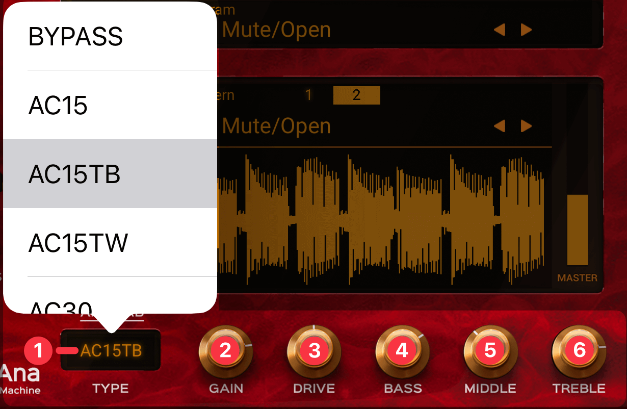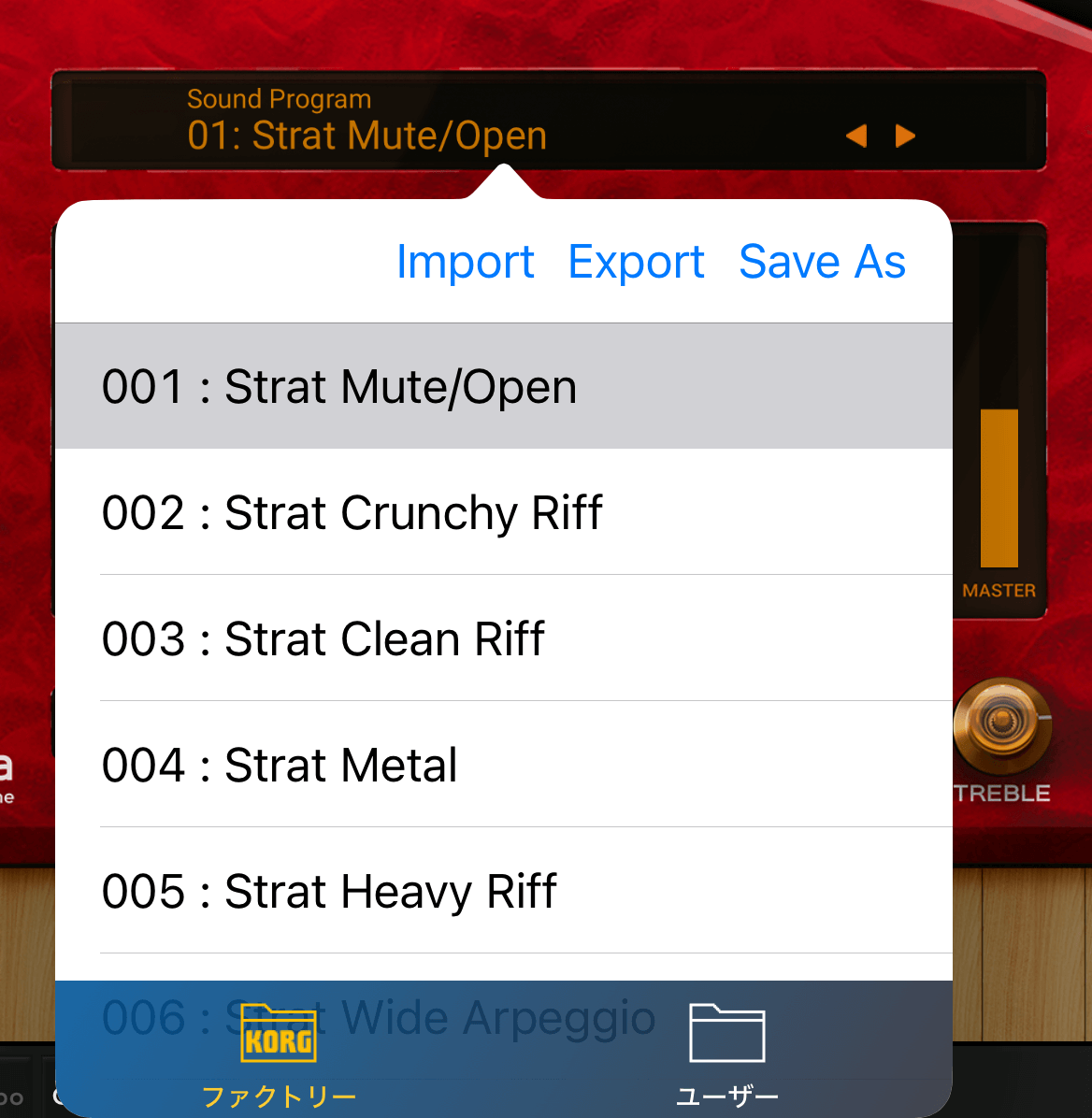 - AMP/CAB アンプやキャビネットを選び、サウンドを整える
