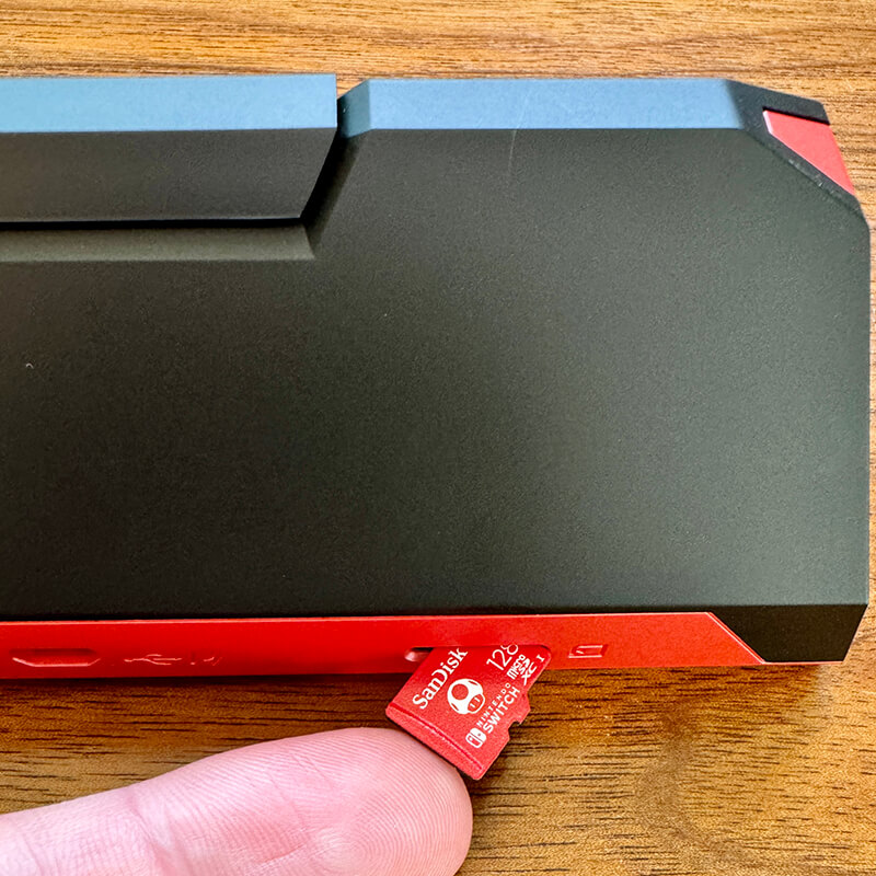 この機種では、Nintendo Switchと同じmicroSDカードを採用しています。これでセッティングは完了!