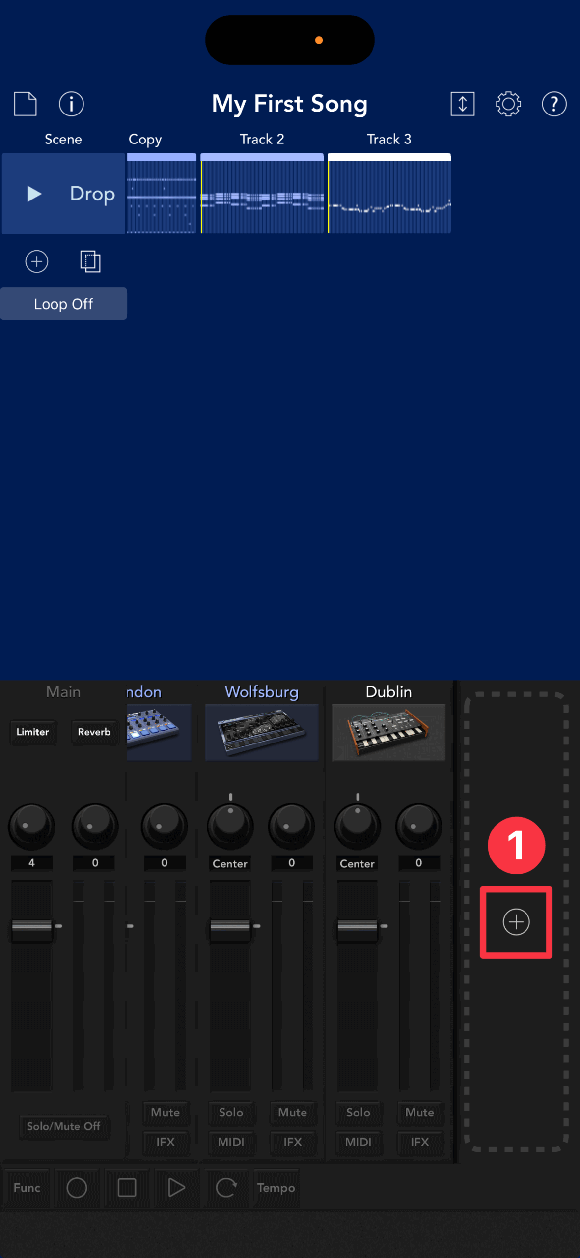 メロディーが決まったところで、楽曲の主旋律を担当するリードトラックを作っていきます。タッチパネルでも演奏が難しくないフレーズなので、ここはリアルタイム入力で打ち込んでみましょう。