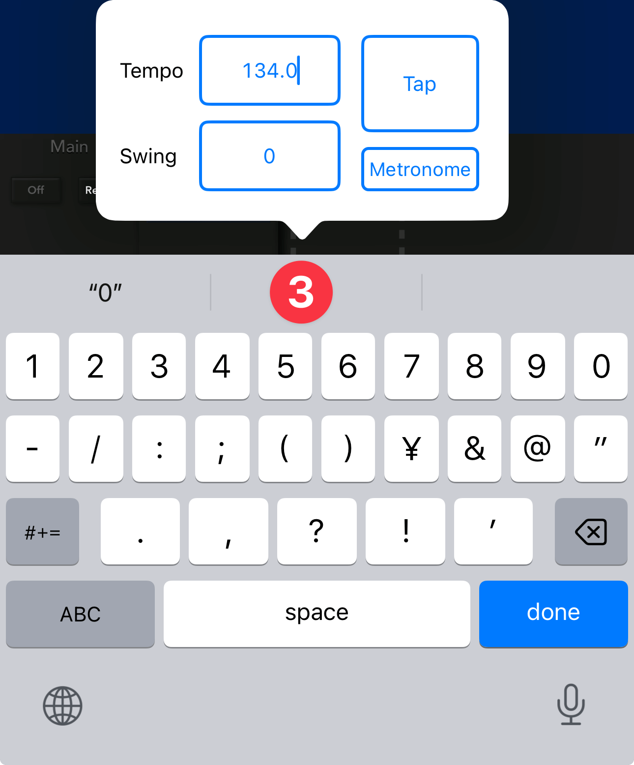 また、Tempoのところを長押し③すると、ソフトウェアキーボードで直接入力できます。