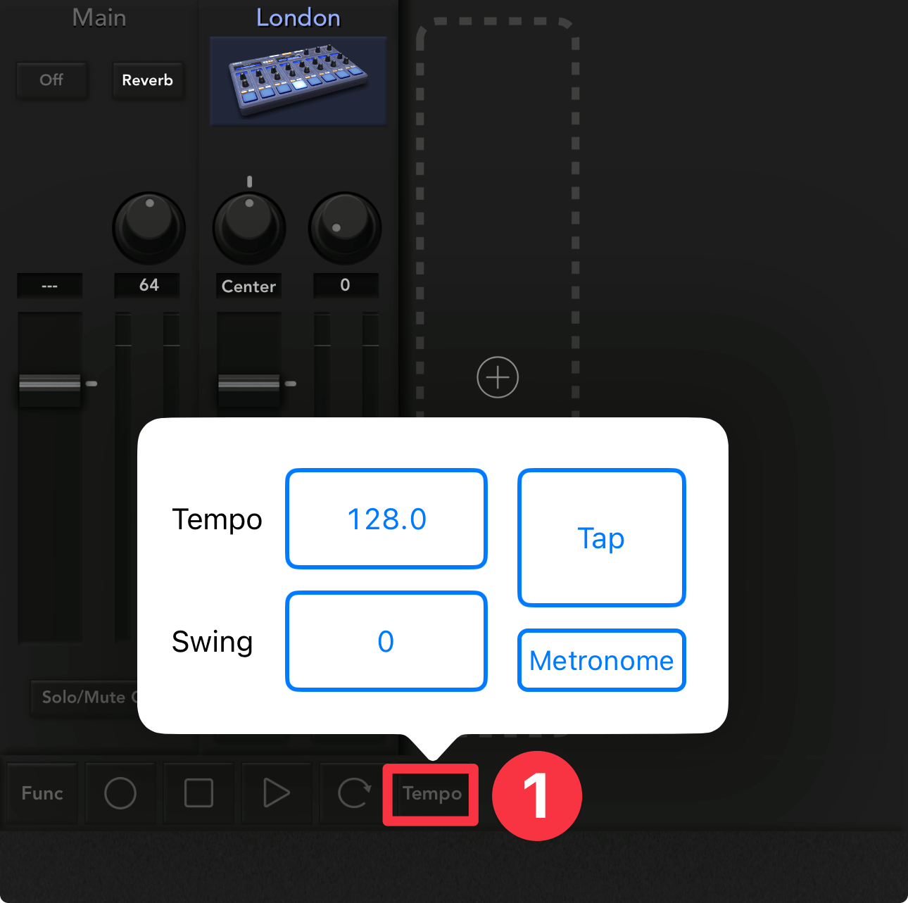 メイン画面の一番下にあるTempoボタン①をタップすると、吹き出しが現れます。