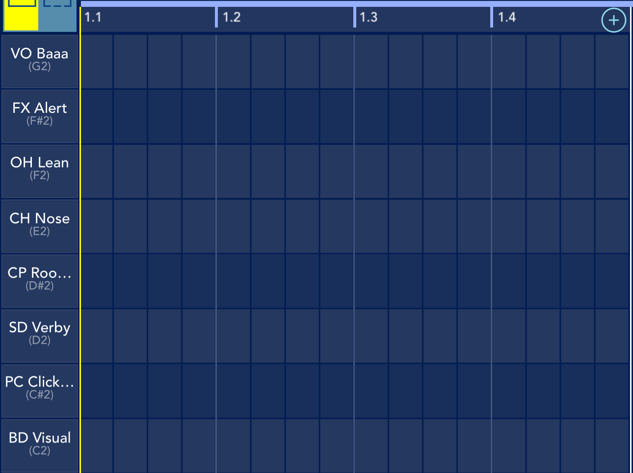 このピアノロールは、グリッドが1/16(16分音符)の細かさで並んでいます。これより広げることも細かくすることもできますが、このチュートリアルでは基本的に1/16で進めていきます。