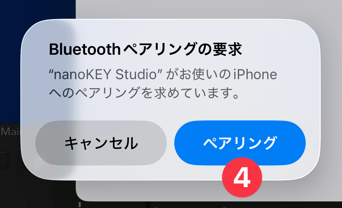Bluetoothペアリングの要求が表示されたら、ペアリング④をタップ。