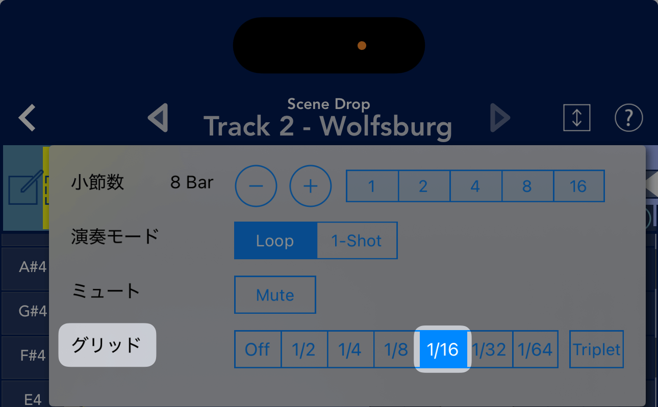 もしグリッドが1/16でなければ、Functionボタンをタップして1/16にしましょう。