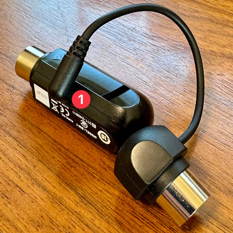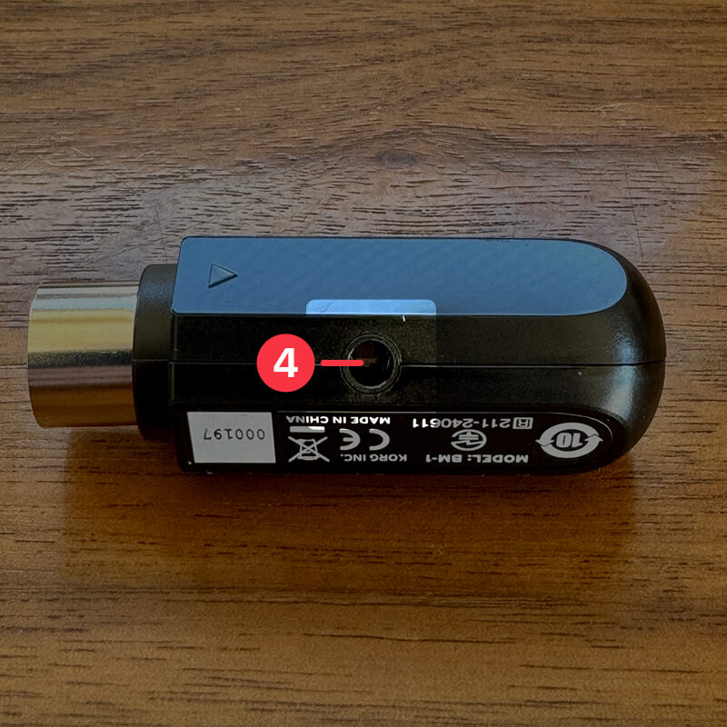 メインアダプターの側面には3.5mm TRSミニフォンジャック④があり、ここでサブアダプターと接続します。