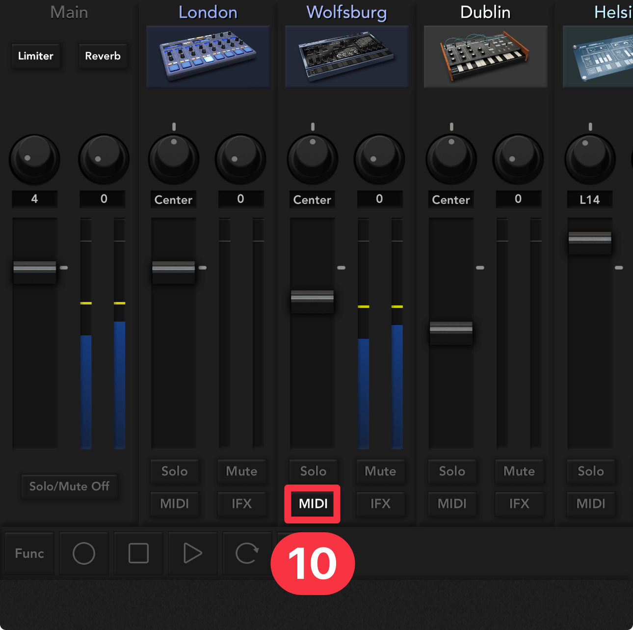 あとは演奏したいトラックでMIDIをOn⑩にすれば、microKORGでKORG Gadgetを演奏できるようになります!