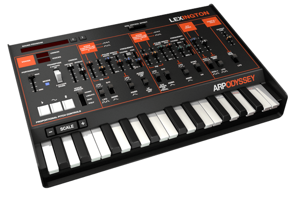 ARP ODYSSEY。1972年に発売された名機で、フィルターの特性が異なる3リビジョンが完全再現されています。幅広いサウンドメイクが楽しめます。