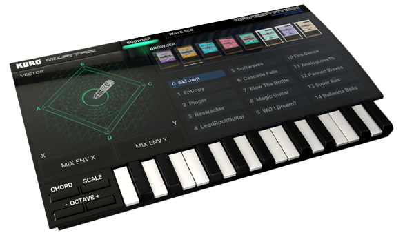 KORG Gadgetは、個性的なデジタルシンセを多数収録。PCMシンセの名機M1や、伝説のベクター・シンセWAVESTATIONも手に入ります。