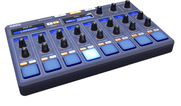 EDMドラムマシン。押し出しの強いドラムサウンドで、まさにKORG Gadgetを象徴する存在です。各種パーカッションも充実しています。