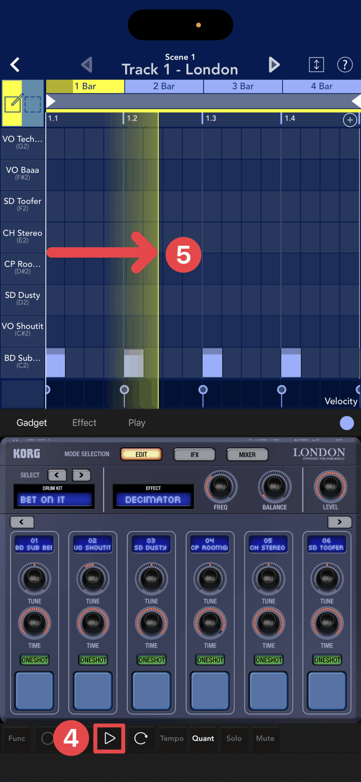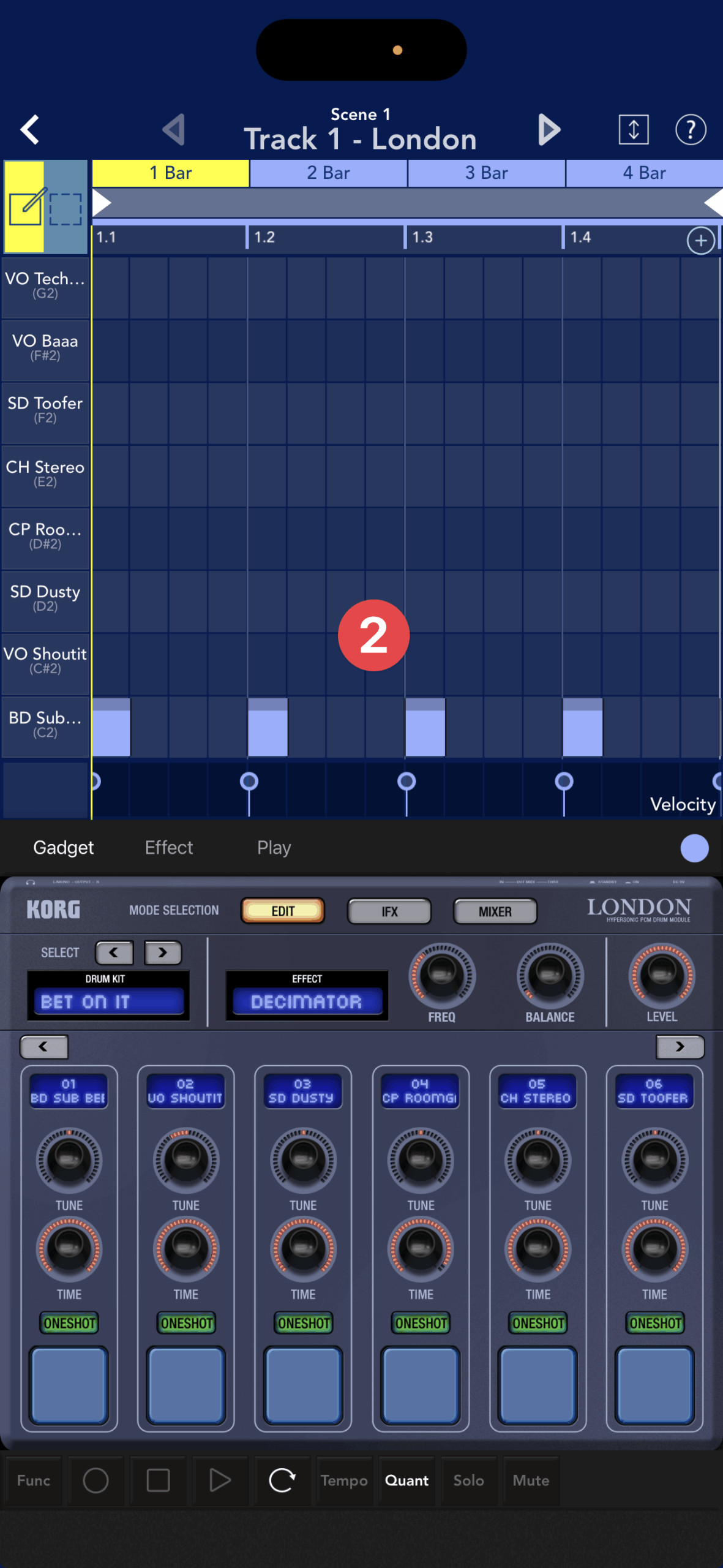 KORG Gadgetで演奏データを打ち込むときは、エディット画面でループ再生させながら作り込むことが基本となります。