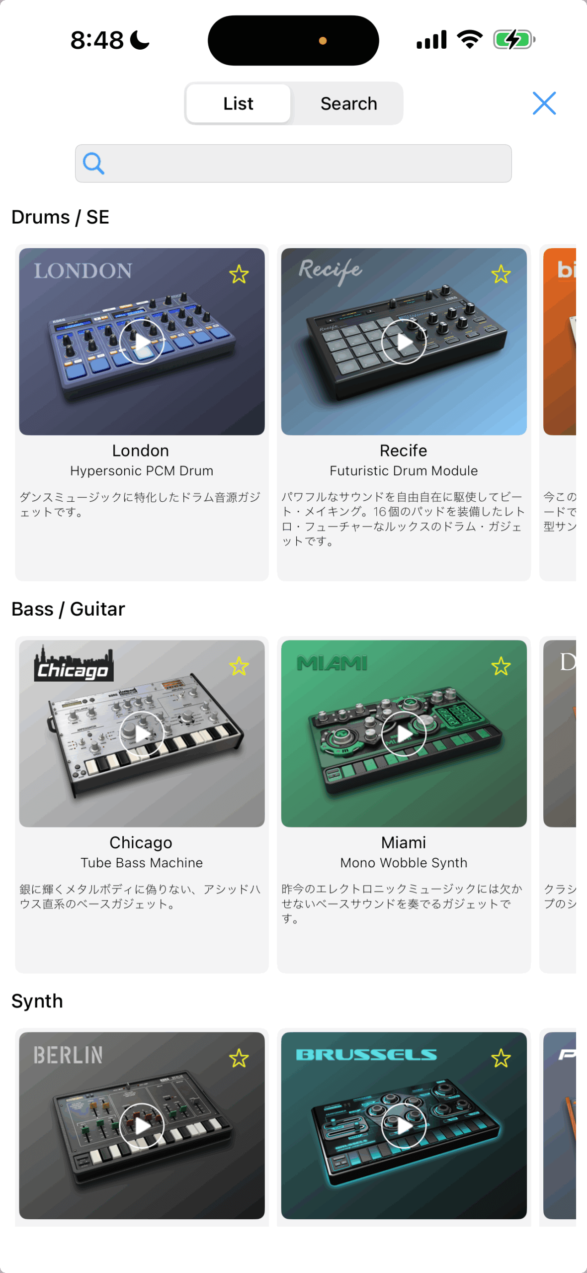 対して、無料版のKORG Gadget Leをお試しの場合は3種類しか選べません。
