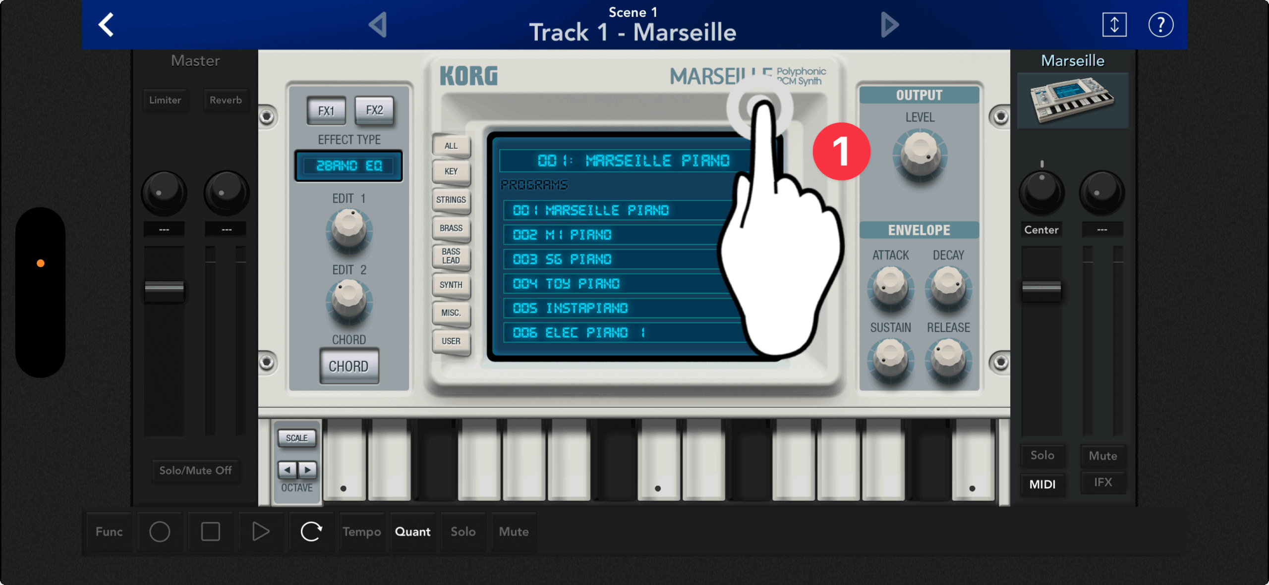 KORG Gadget 超・初心者向けガイド「ガジェットを演奏してみよう」編。今回は、前回のレッスンで選んだガジェットMarseilleを、実際に弾いてみましょう。