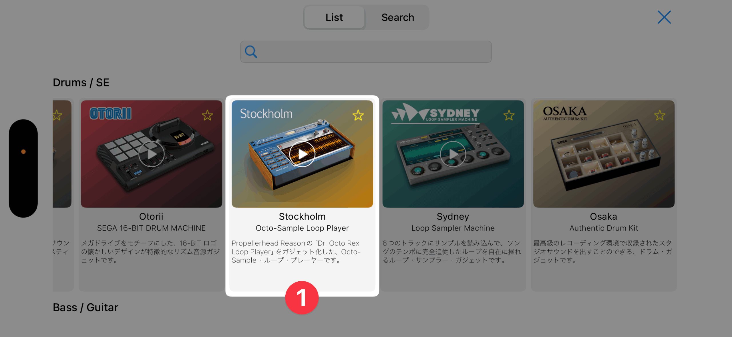 Stockholmは1台につき、ドラムやギターループなどを最大8つセットできます。