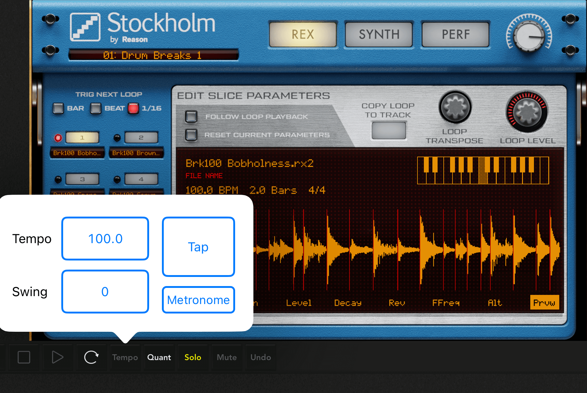 Stockholmも機能としてはほぼ同じで、プリセットのRexファイルをエディットしたり、外部からRexファイルを取り込んだりして、自作曲に使うことができます。